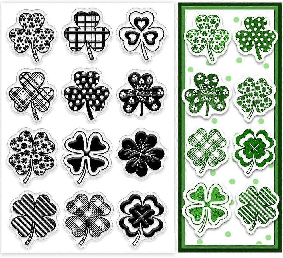 Shamrock Clear Stamp for Scrapbooking Four Leaf Clover Silicone Stamp Leaves Transparent Rubber Stamp for Saint Patrick Invitation Cards Journal Gift