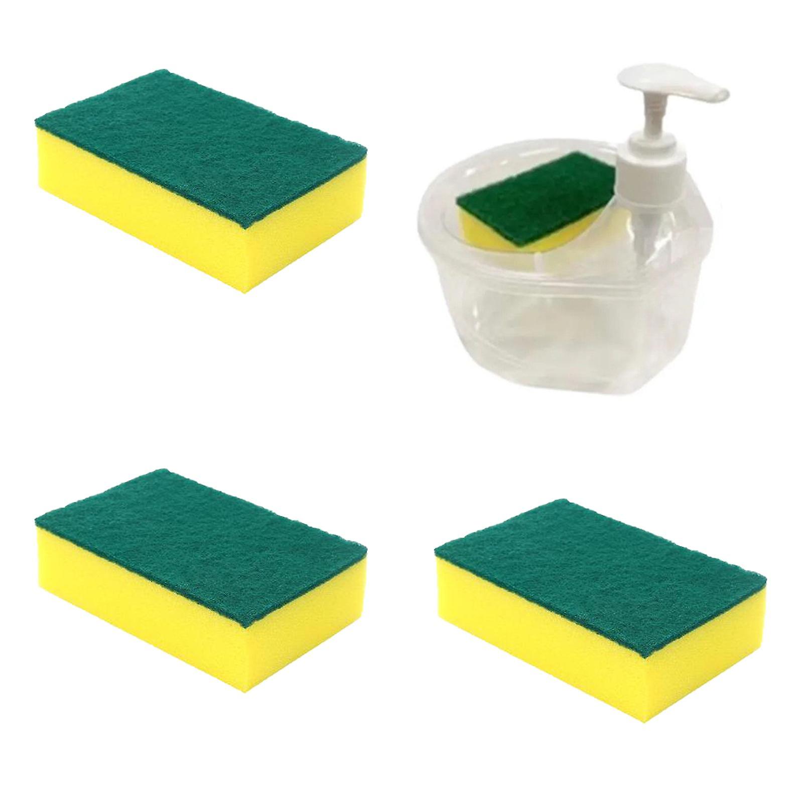 Kitchen Soap Dispenser with Scrubber Holder and 4 Sponges with Pump Portable Soap Liquid Pump Bottle for Home Countertop