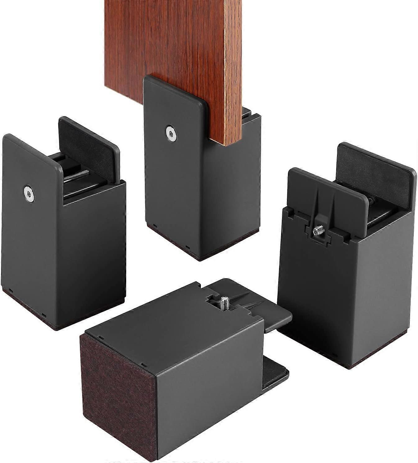 Adjustable Bed and Furniture Risers with Screw Clamp, 4Pcs 10cm Adjustable Bed Risers, Heavy Duty Sofa Tables Chair Risers (Black)