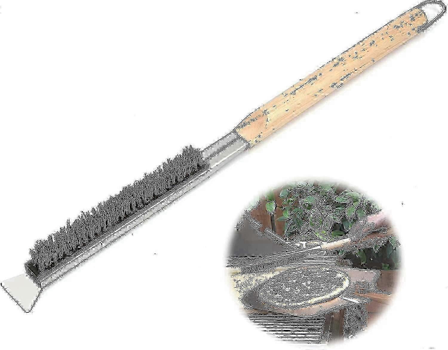 Pizza Oven Cleaning Brush With Scraper, Wooden Handle, Portable Barbecue Kitchen Accessory Kit