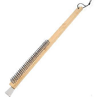 Pizza oven brush with scraper, 1x23inch pizza oven brush with steel bristles, extended handle and hanging rope, pizza