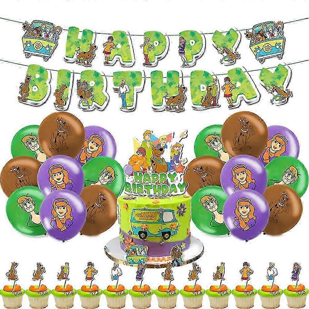 Scooby Themed Kids Birthday Party Supplies Kit with Banner, Balloons & Cake Toppers