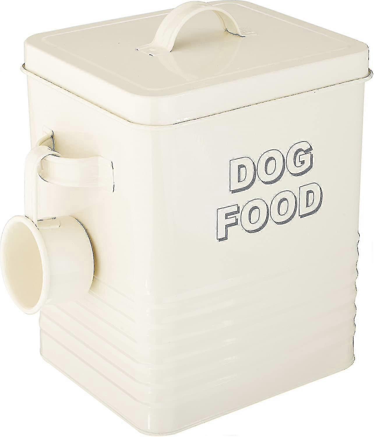 Dog Food Storage Tin With Scoop, Cream Steel, 1 piece