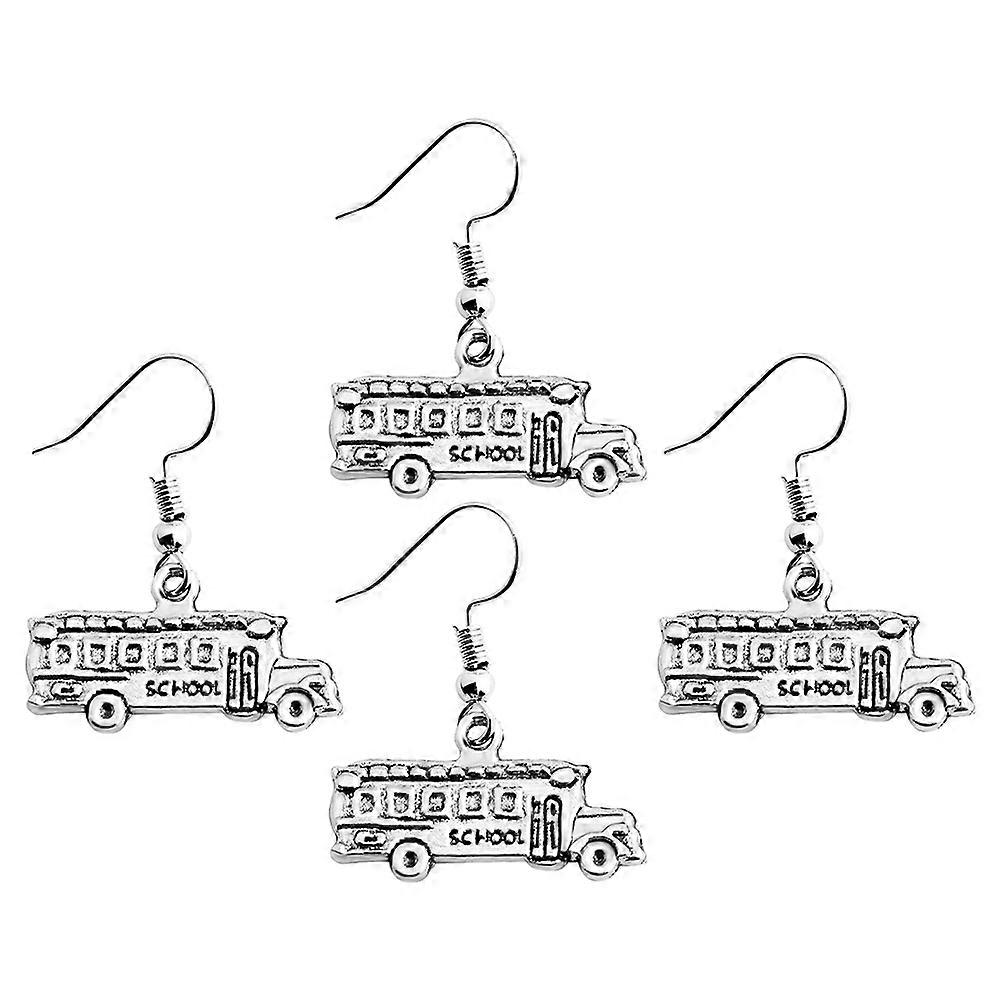 School Bus Shaped Earrings Zine-alloy Jewelry Girlfriend Sister Mother 2 Pairs Silver