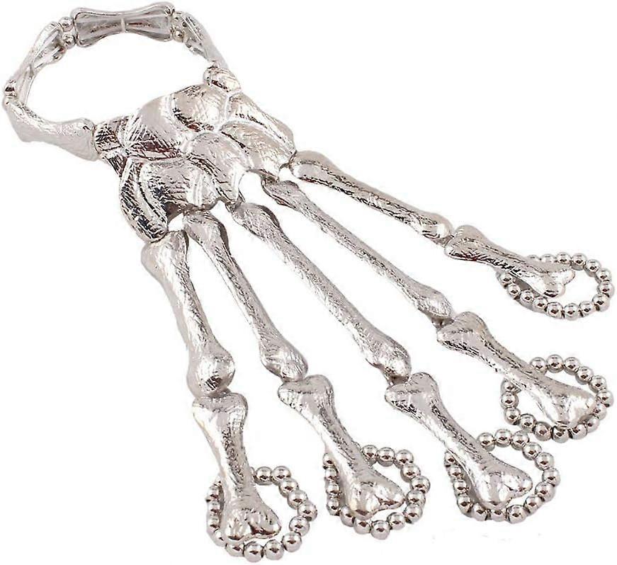 Skeleton Hand Bracelet Skeleton Bracelet Alloy Skeleton Hand Bracelet Skeleton Ring Hand Halloween Hand Skull Chain Finger Jewelry Women 1pcsSilver