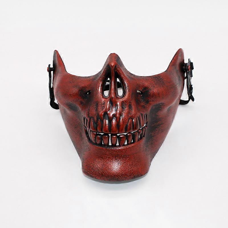 Skeleton Half Face Mask Costume Halloween Party Airsoft Skull Mask Motorcycle2pcs-gold/red