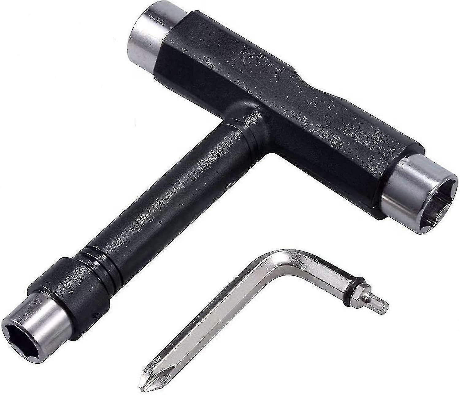 Multipurpose Tool: A multipurpose skateboard T-tool that allows you to adjust axle nuts, mounting hardware, and kingpin nuts on top of your truck; perfect for finishing your skateboard assembly. ALL-IN-ONE DESIGN: All-in-one skateboard tool has everything you need to tighten or repair your skateboard. This skateboard tool works with all types of skateboards and longboards, and it can help with changing wheels and cleaning bearings. INNOVATIVE CONSTRUCTION: The Skateboard T-Tool includes a 1-size socket and a slide-out Phillips wrench screwdriver that can be stowed into the top handle when not in use. Lightweight and Portable: It fits easily in most pockets so you can take it with you and use it when you need it. Weighing only 0.3 lbs, it's lightweight and easy to use on the go. Color: Black Package includes: 1*Skateboard T-toolNote: 1. Please allow a little error due to manual measurement. Please make sure you don't mind before bidding. 2. The color may vary due to different monitors, please understand. Note: Hello, please pay attention to your delivery address when purchasing products. If your receiving information (such as: name, street, house number, doorbell/email without name and other information is incorrect, the order will not be delivered correctly.)
