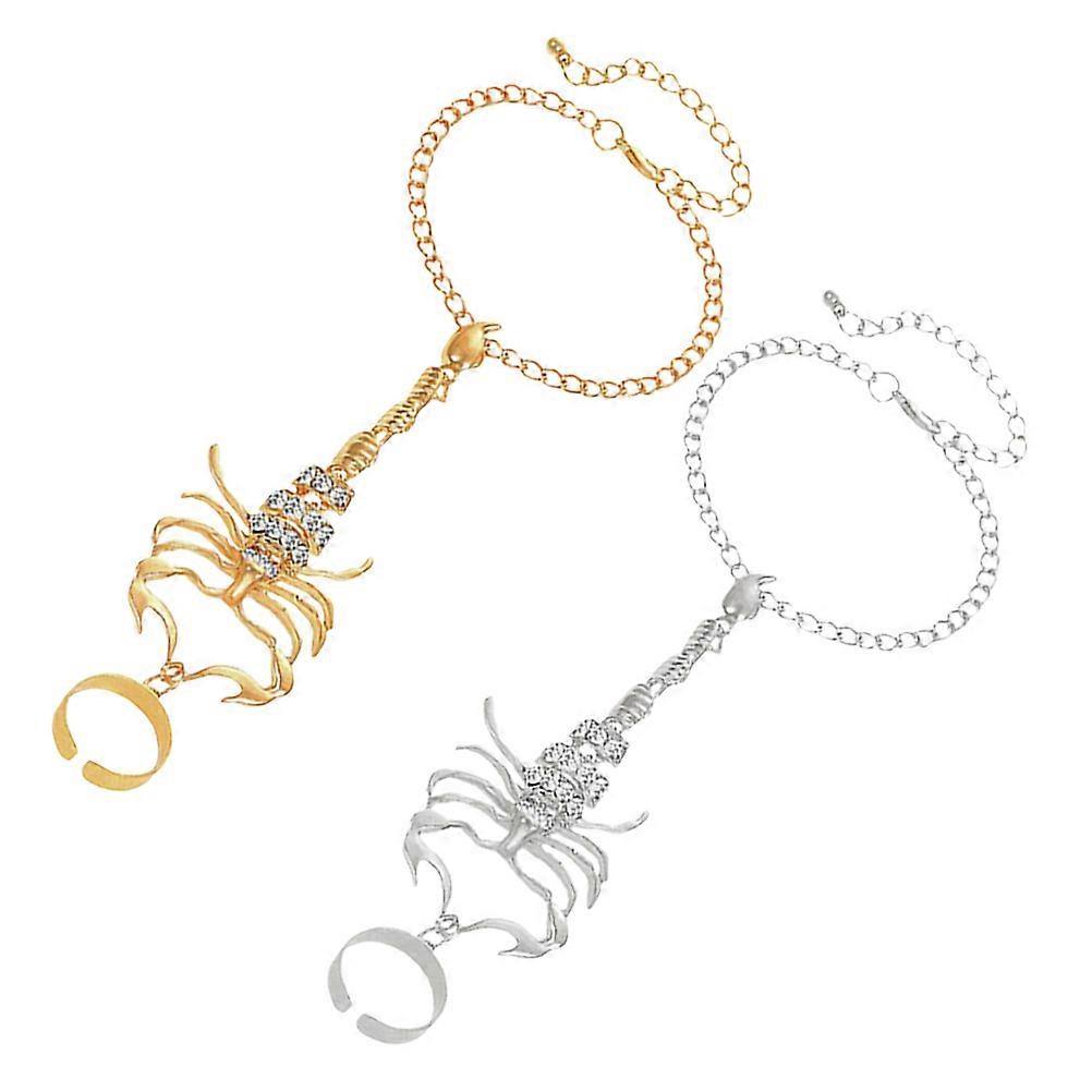 Scorpion Jewelry Scorpion Ring Bracelet Exaggerated Fashion Silver 3D Scorpion Shape Eye-Catching 2Pcs