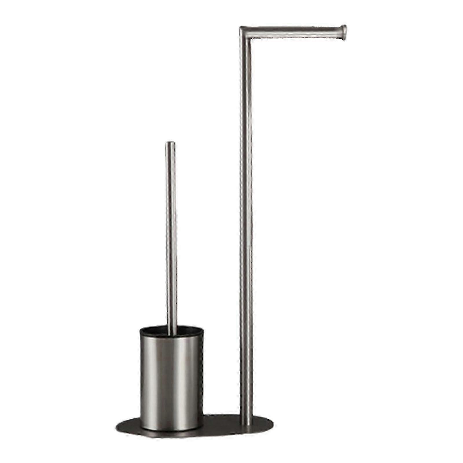 Stylish Brushed Nickel Toilet Papers Holder with Portable Brush Stainless Steel No Drilling Standing Bathroom Accessory