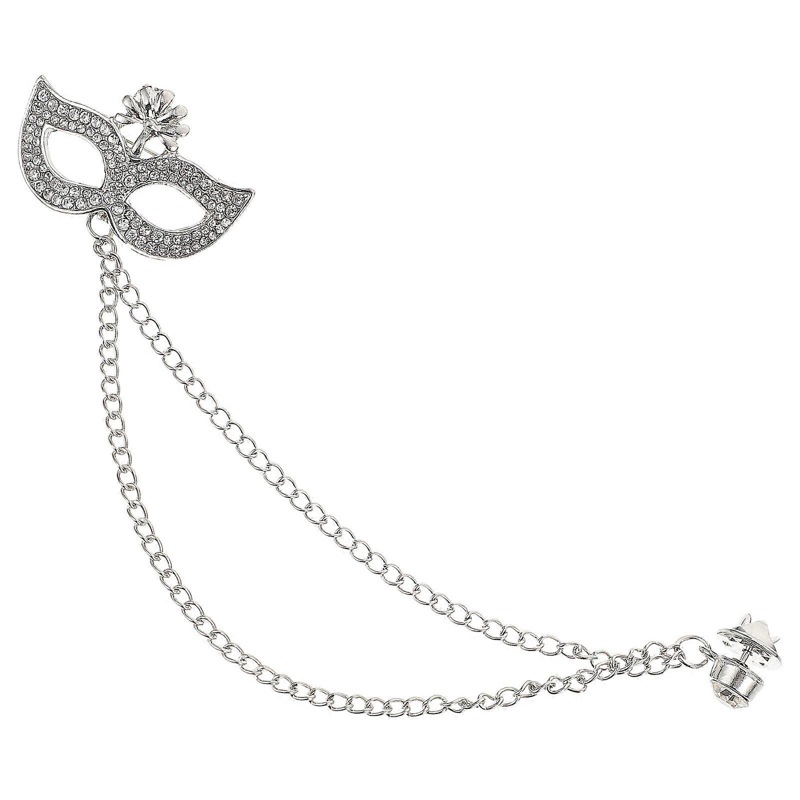 Stylish Corsage Brooch Mask Shape Chain Pin For Scarves And Hats In Silver Finish 1Pcs