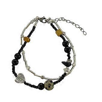 Stylish Double Strand Love Heart Bracelet Vintage White Black Beads Wristband Elegant Beaded Bangle Accessory Gift