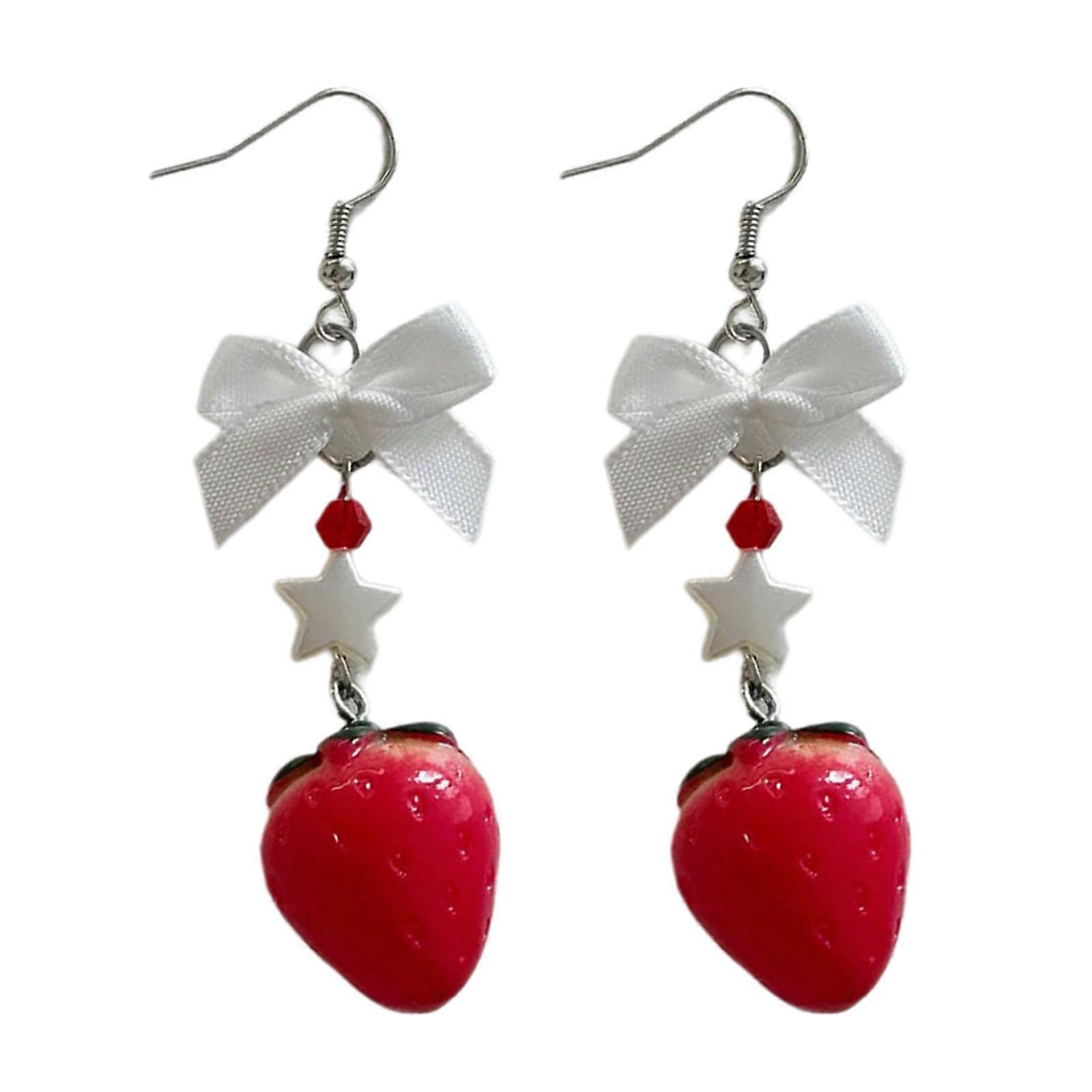 Stylish Fruit Dangle Earrings Delicate and Fashionable Bowknot Strawberry Ear Rings Unique Ear Accessories Ornaments