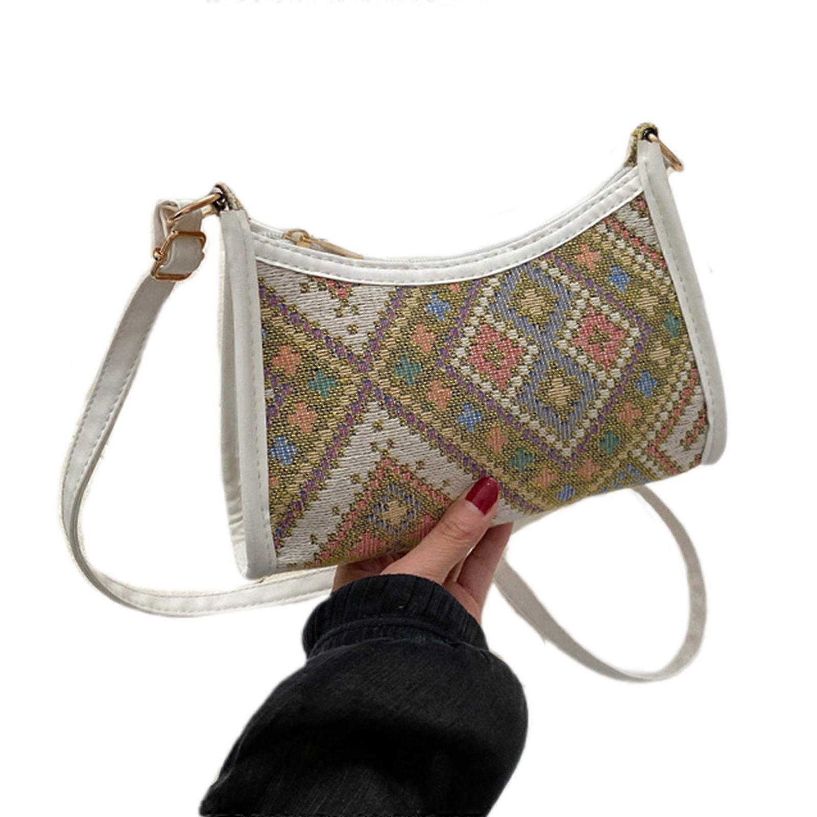 Stylish Bohemian Crossbody Bag Roomy & Durable Shoulder Bag with Floral Print Fashionable Crossbody Purse for Girls White