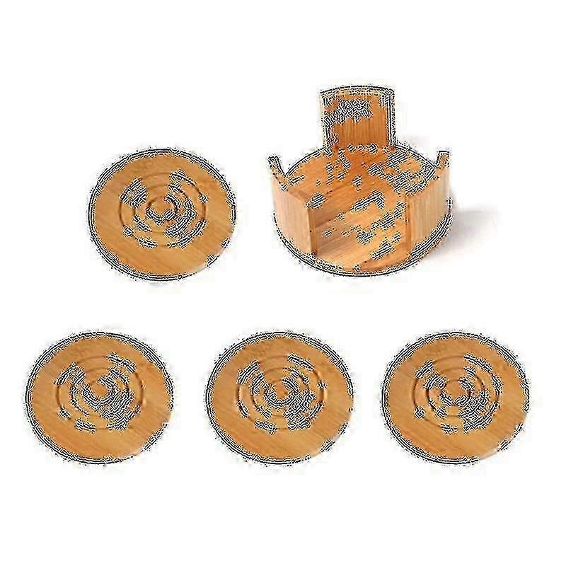 Absorbent Bamboo Coasters Set with Stylish Holder - Eco-Friendly Wooden Drink Coasters for Home &Office Use