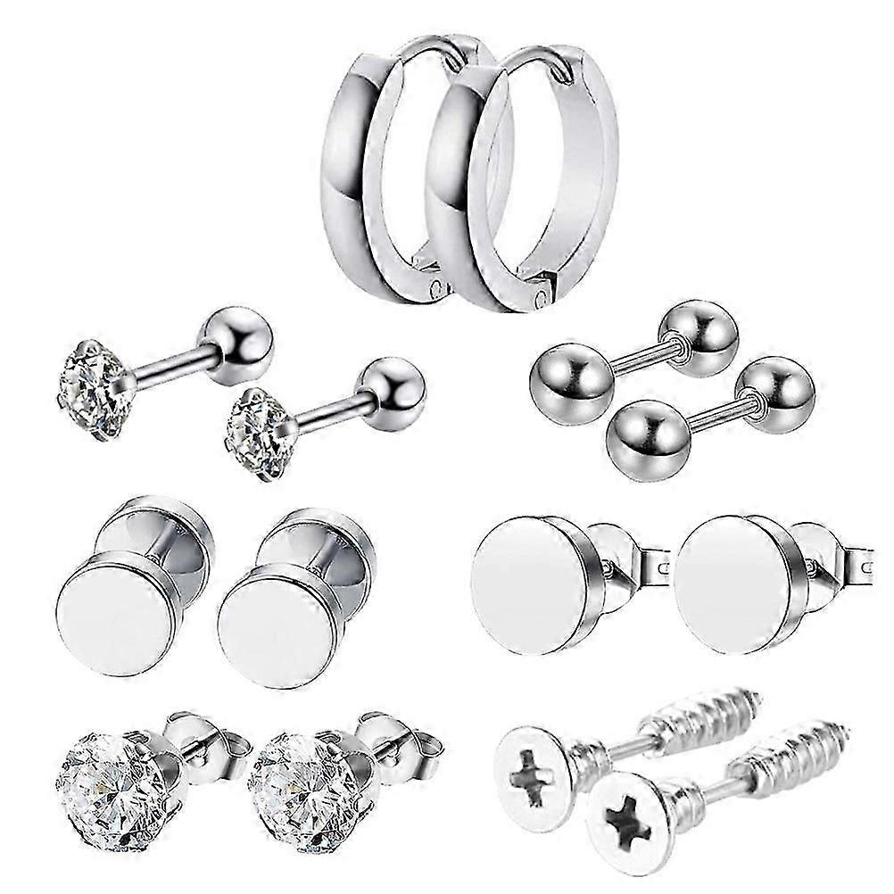 Stylish Men's Earring Set Round Daily Wearing Silver 14Set Durable Non-Allergenic