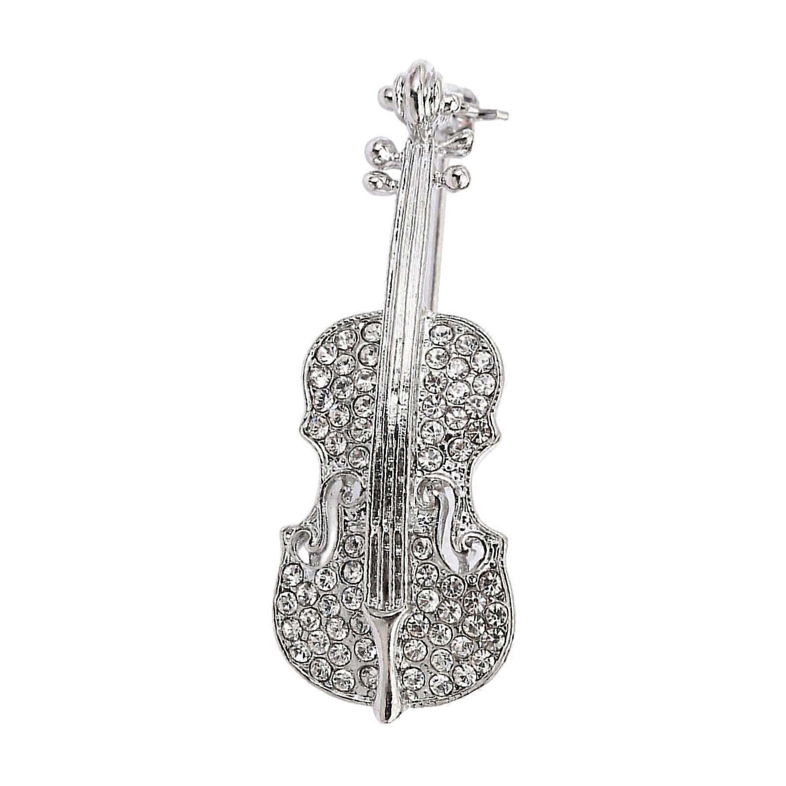 Stylish Rhinestones Violin Brooch Vintage Inspired Jewelry Accessory for Music Enthusiasts Fashionable Gifts Ideas Silver