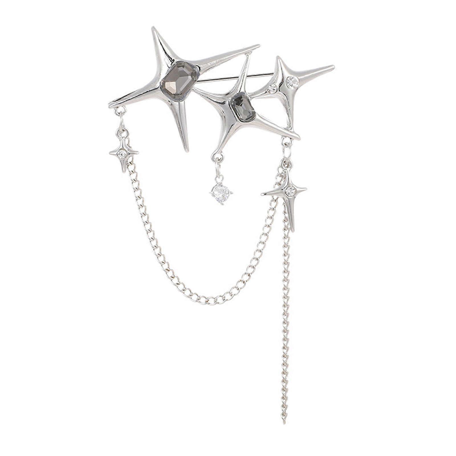 Stylish Women Brooch Four Pointed Star Chain Blouse Pin Crystal Badge Jewelry Punk Brooch for Women