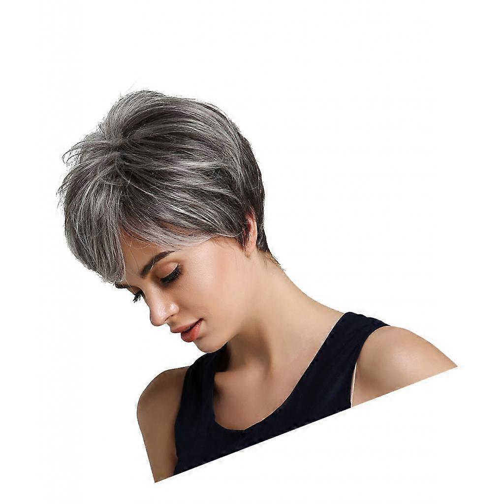Stylish Women's Human Hair Short Side Part Wigs Pixie Cut Wig Grey White