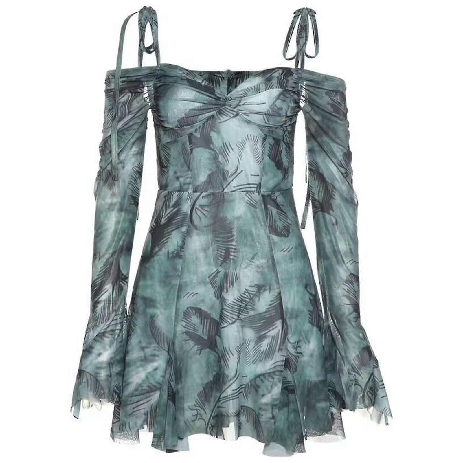 Stylish Y2K Mini Dress Spaghetti Strap Dresses Women Floral Print Off Shoulder Dress for Summer Parties and Club Nights Green XL