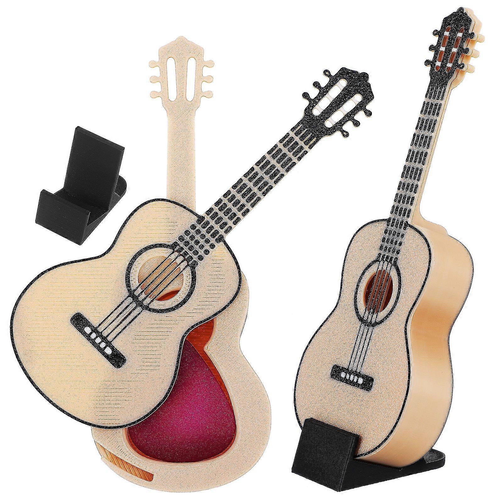2pcs Miniature Guitar With Stand: Dollhouse Mini Musical Instrument - Bass Guitar Model Ornament For Kids Toys Birthday Presents