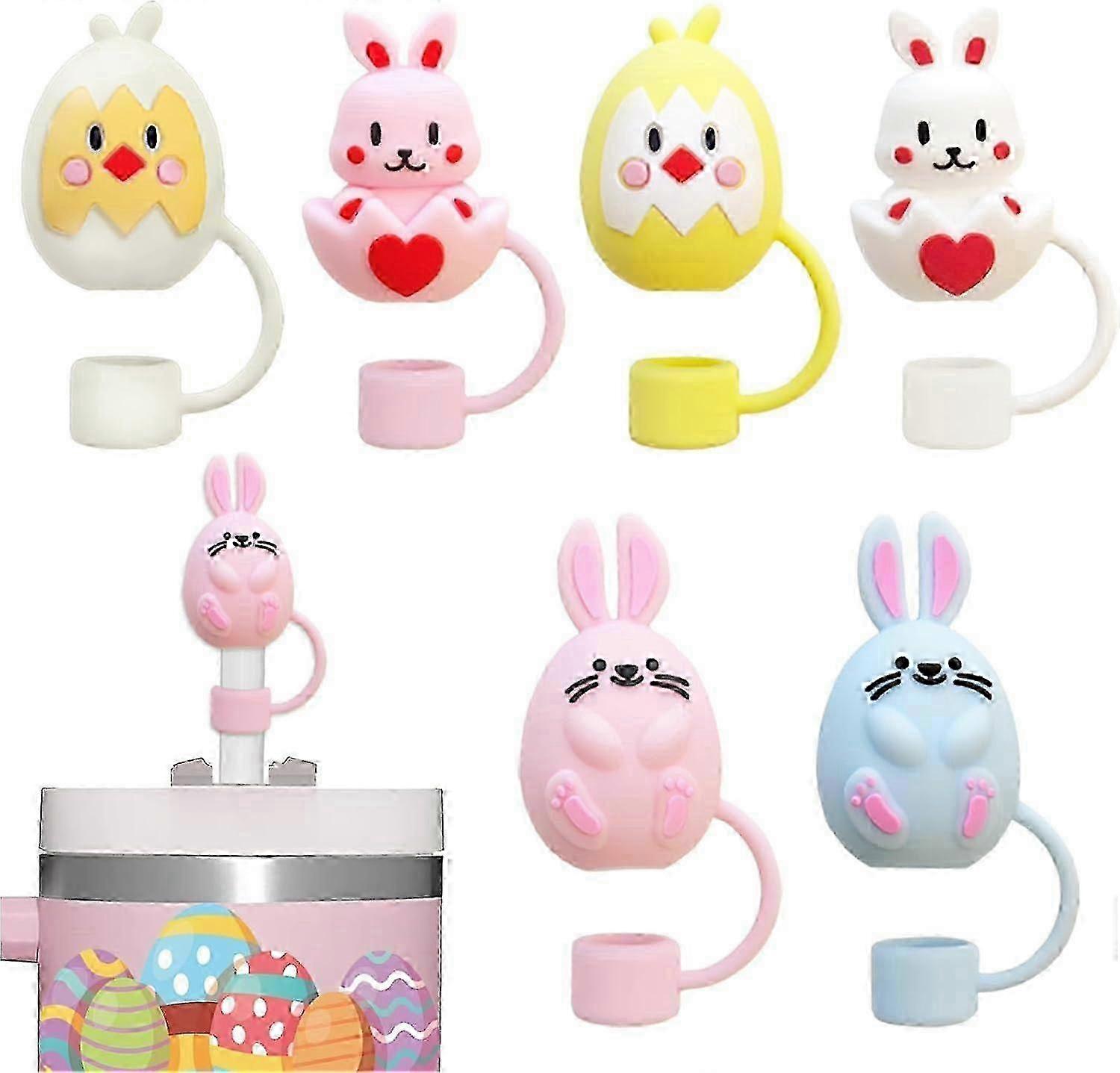 Easter Straw Cover Cap Fit for Stanley Cup, 6pcs Silicone Easter Egg, Bunny & Chick Straw Toppers, 10mm Dust Proof Reusable Straw Tips 2025