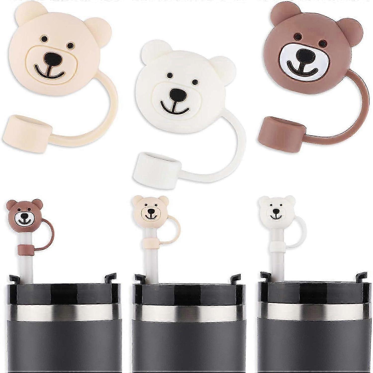 Pack of 3 Bear Straw Cover Silicone for Stanley Cup 40 oz, Cartoon Soft Straw Tips Lid(3 Colours)