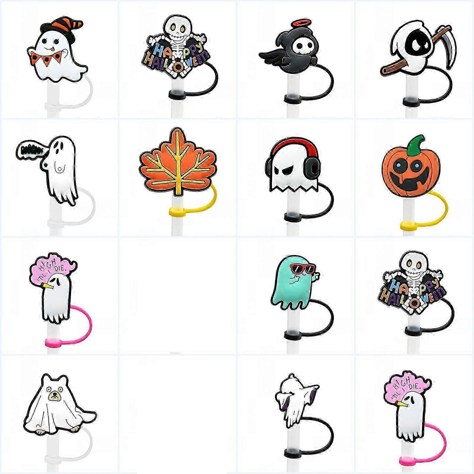 14Pcs Halloween Straw Cover Cap for Stanley Cup, Silicone Straw Topper Straw Tip Covers for Stanley Cups Accessories