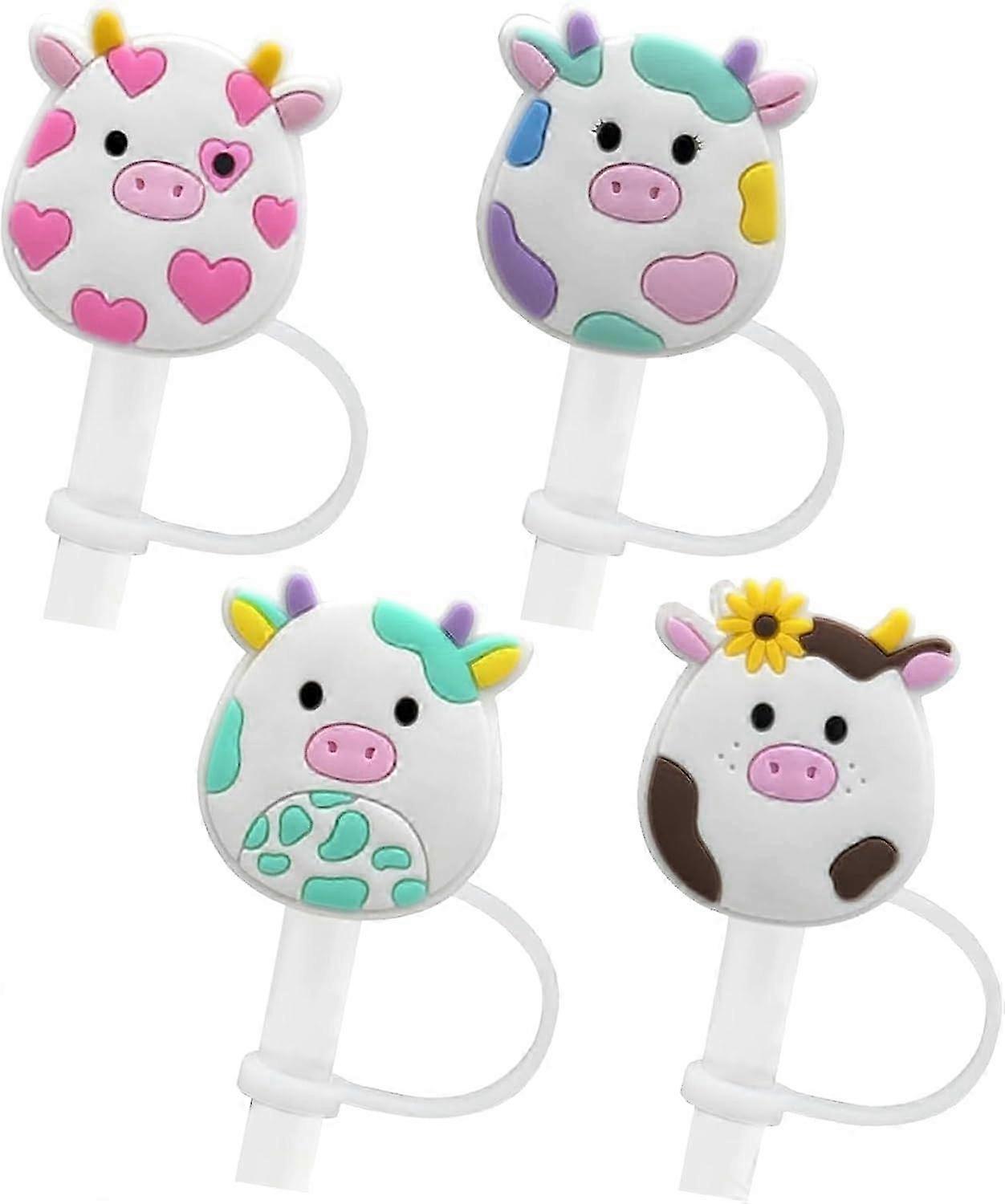 4 pcs Straw Cover Cap for Stanley Cup 30 Oz 40 Oz Tumblers - 10mm Cute Cow Straw Tips Covers,Silicone Straw Toppers, Funny Animals Straw Covers Cap P