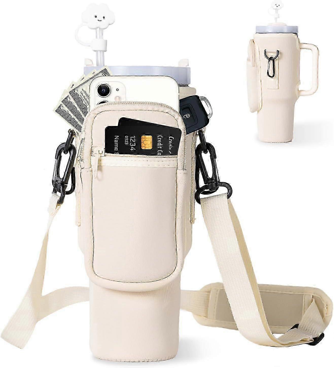 Water Bottle Carrier Bag with Phone Pocket for Stanley 40/30 oz Tumbler Neoprene Water Bottle Holder Pouch with Adjustable Strap Bollus