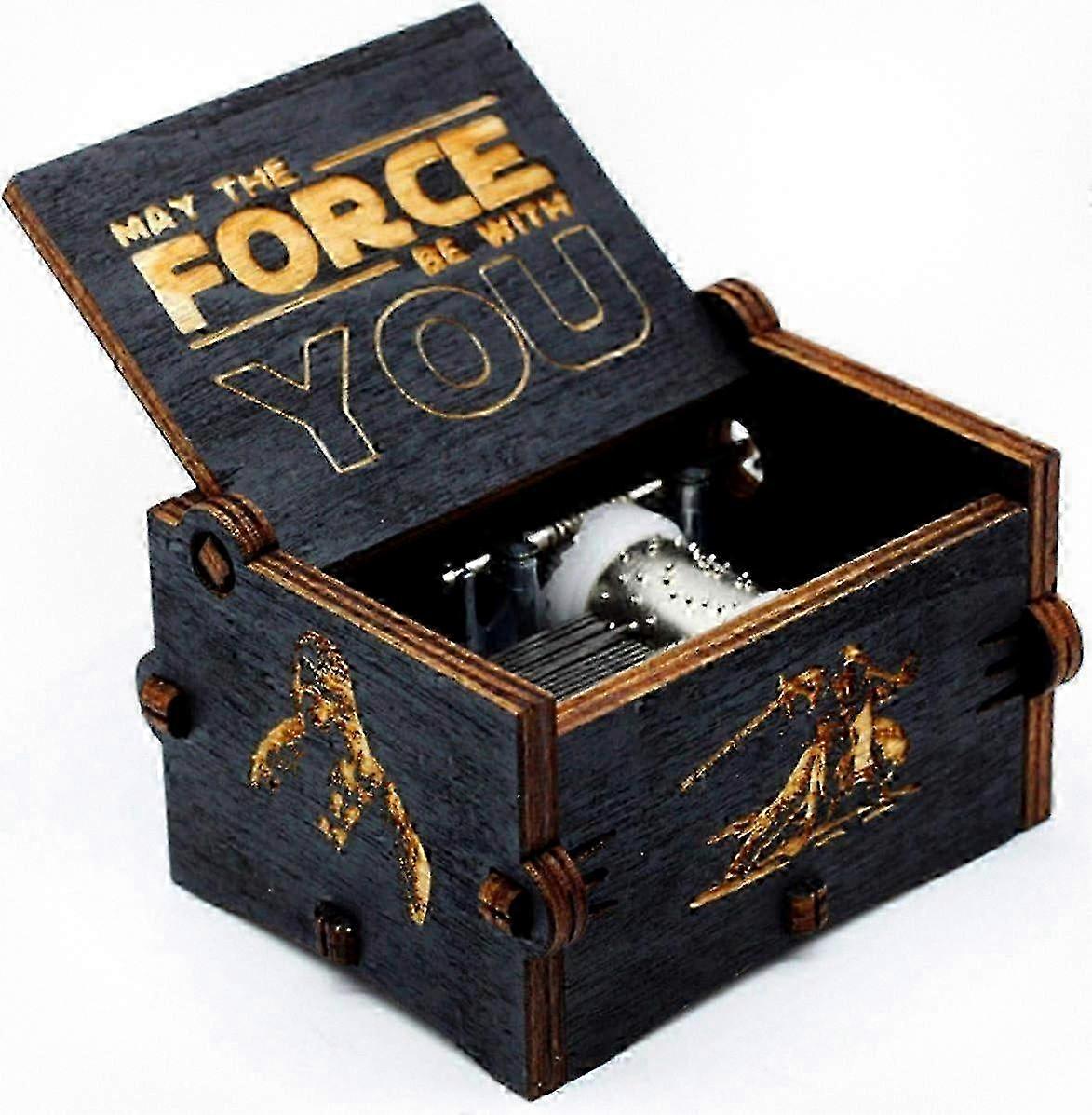 Star Wars Themed Black Wooden Hand-Cranked Music Box with Antique Carved Design