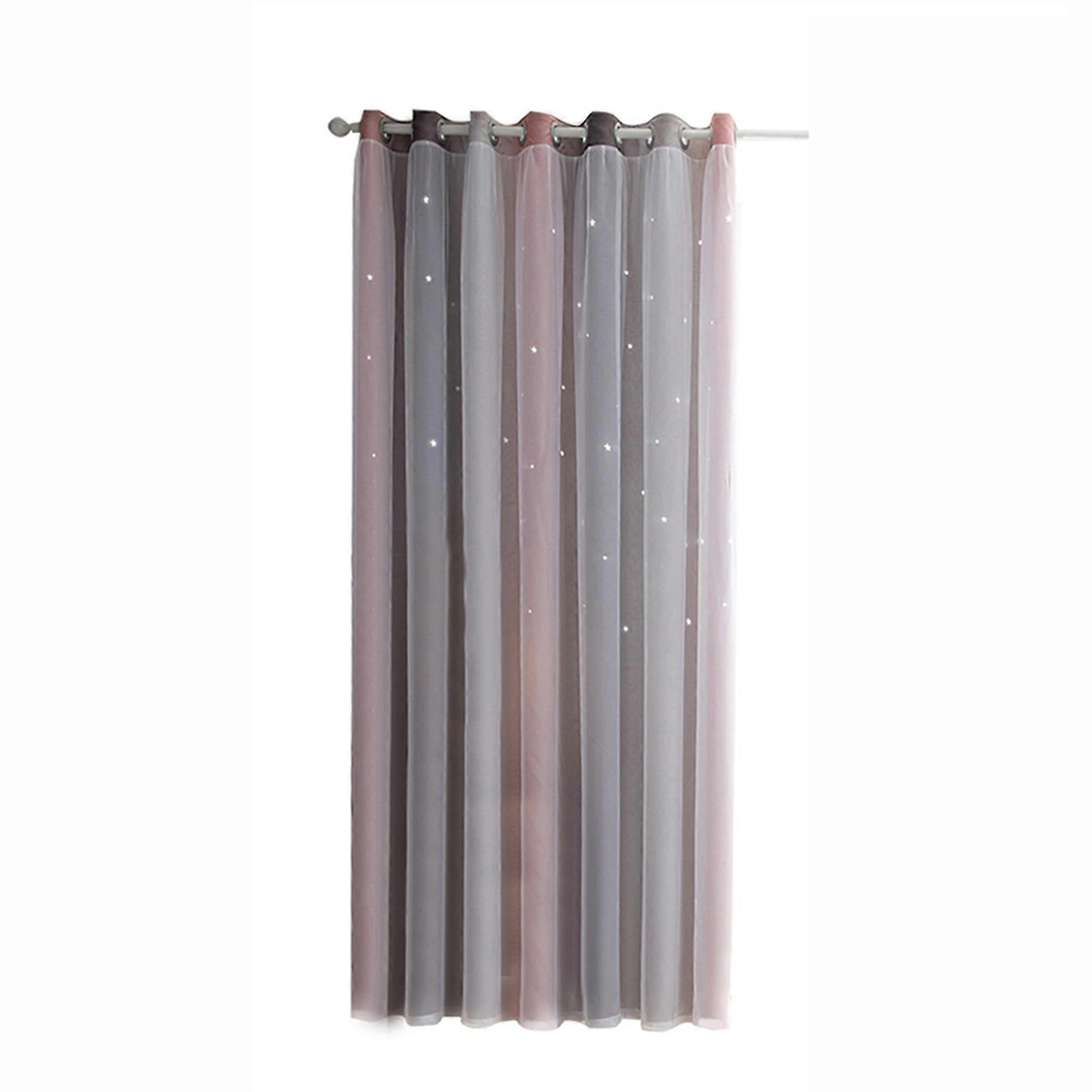 Star Curtains Stars Blackout Curtains for Kids Girls Bedroom Living Room Colorful Double Layer Star Window Curtains, 1 Panel (53"W x 85"LGray)