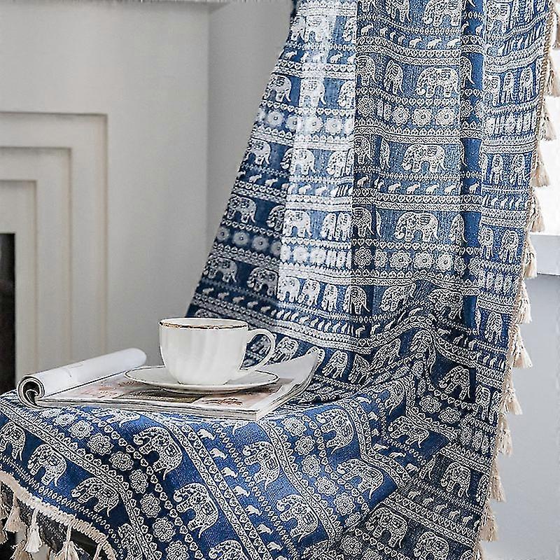 Star Cotton And Linen Printed Tassel Light Impermeable Living Room Room Bedroom Bay Window Free Punch Curtain