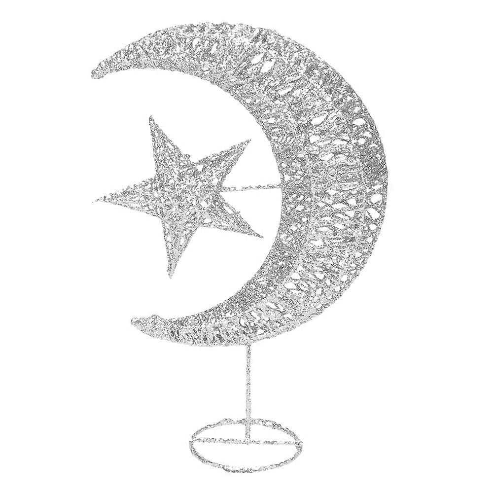 Star Tree Toppers Glittering Iron Pentagram Moon Shape Christmas Tree Decoration Silver 36x29x5cm Decorative 1Pc