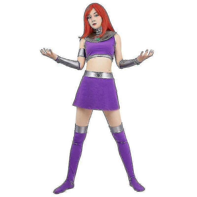 Starfire cosplay costume women halloween carnival cos uniform suit crop top skirt stockings