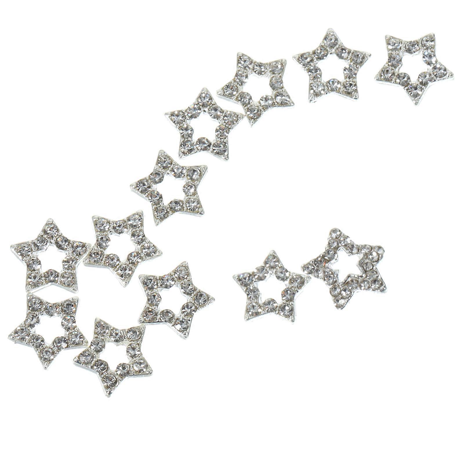 Star Rhinestone Nail Charms Star Shaped Alloy Silver Charms for Nails Nail Art 12Pcs