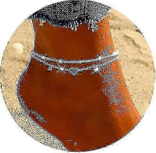 Sterling Silver Anklet Bracelets, 925 Sliver PlatedCharm Dainty Layer Anklets for Women Trendy
