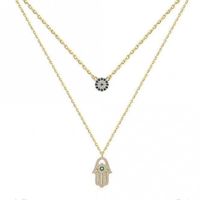 Sterling Silver Gold Plated Double Chain Evil Eye Necklace ERLN037