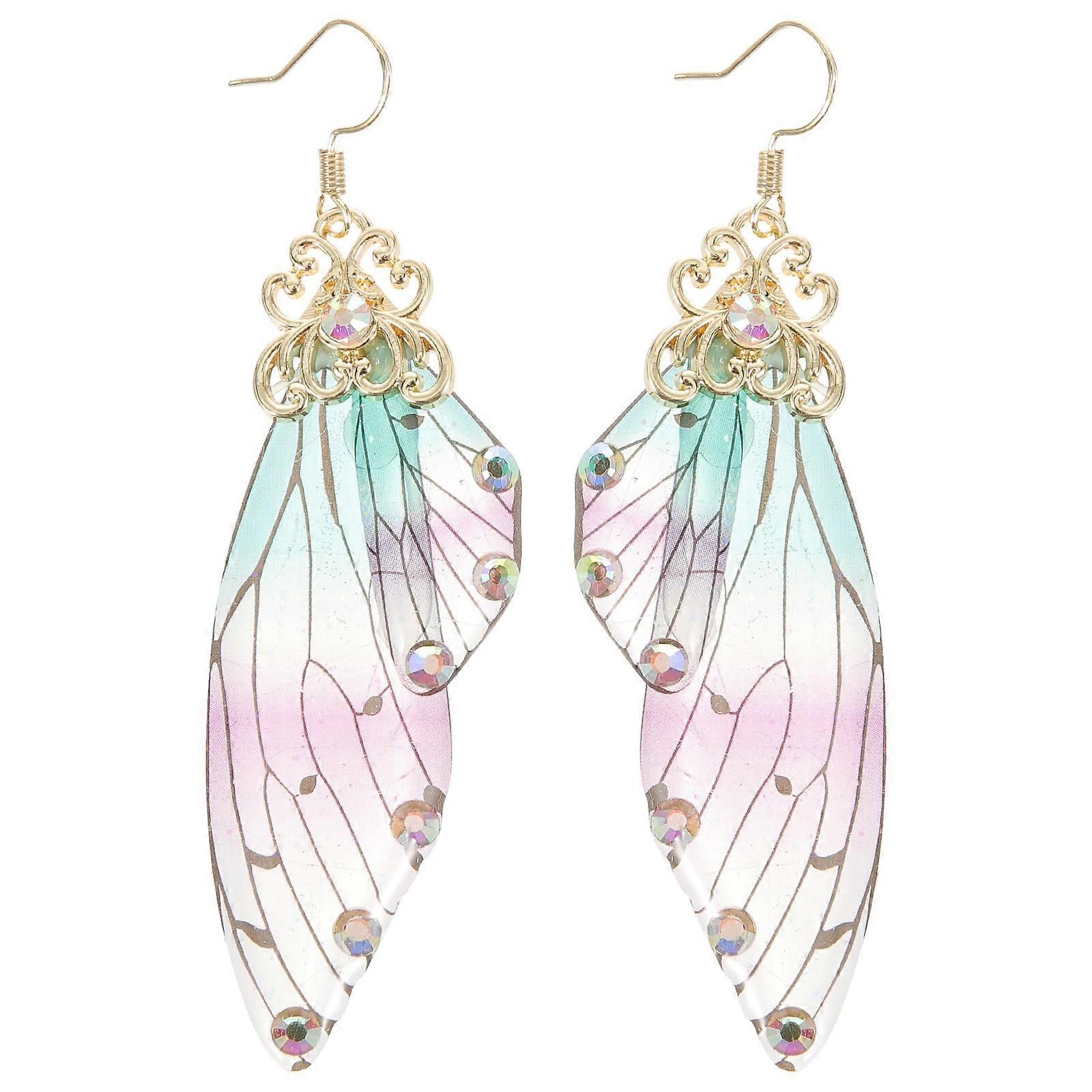Sterling Silver Butterfly Wing Drop Earrings for Women Gradient Green Pink Cubic Zirconia Dangle Jewelry, Lightweight Elegant Ear Accessories for