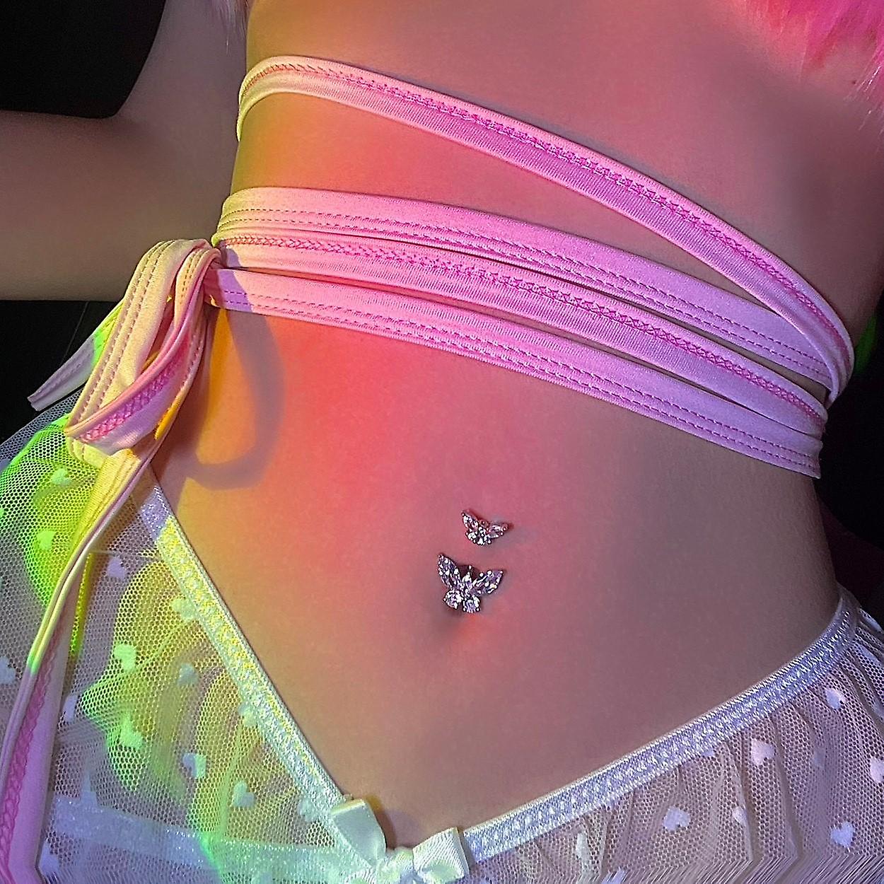 Sterling Silver Belly Button Ring S925 Double Butterflies Navel Ring Cubic Zirconia Body Piercing Jewelry