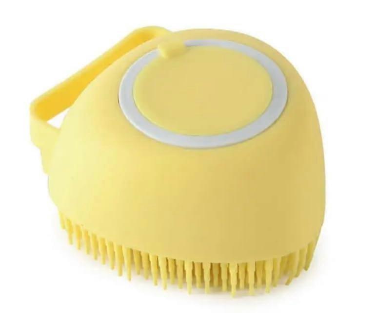 Silicone Dog Cat Brush with Steam Shampoo Dispenser Multifunctional for Grooming (Yellow)