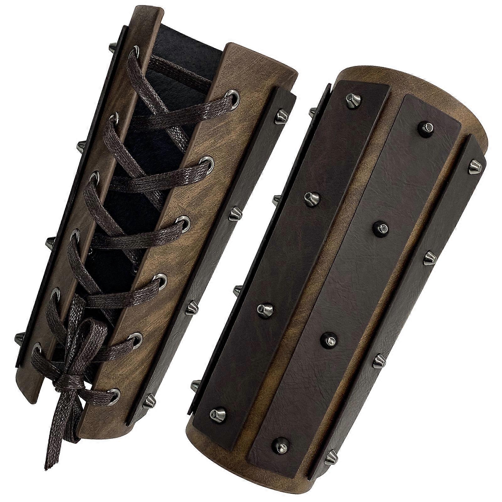 Steampunk Arm Gauntlet Medieval Wristband Adult Cosplay Warrior Arm Guards Stage Props Arm Bracers Costume Accessories Light Brown