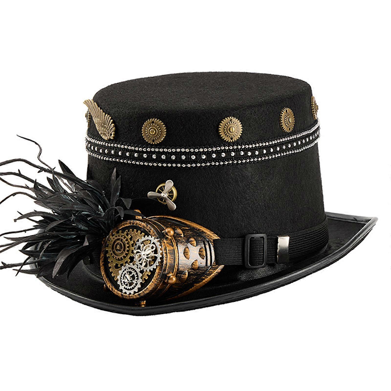 Steampunk Gothic Style Top Hat With Studded Gear Gothic Themed Cosplay Costume Accessories Black