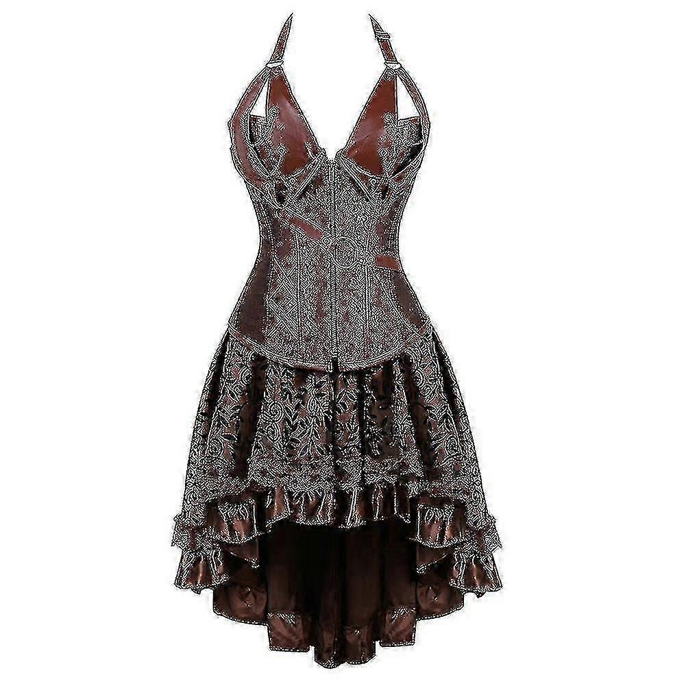 Kindly Notice:1. There is 2-3 percent difference according to manual measurement.2. Please check the measurement chart carefully before you buy the item.1 inch = 2.54 cm3. Please note that slight color difference should be acceptable due to the light and screen.4. Corsets are sized by waist size, so please chose your corset according to your waistline, not your bust. Our Overbust corsets will fit any body shape. Style: Steampunk Faux Leather Corset ,Floral Lace Skirt Color: Black and Brown Occasion: This Steampunk Corset Sets is widely used in wedding, christmas party, clubbing, halloween,cosplay, stage performance,intimate or naughty occasions. Package Include: 1x Steampunk Corset Vest 1x Gothic Skirt