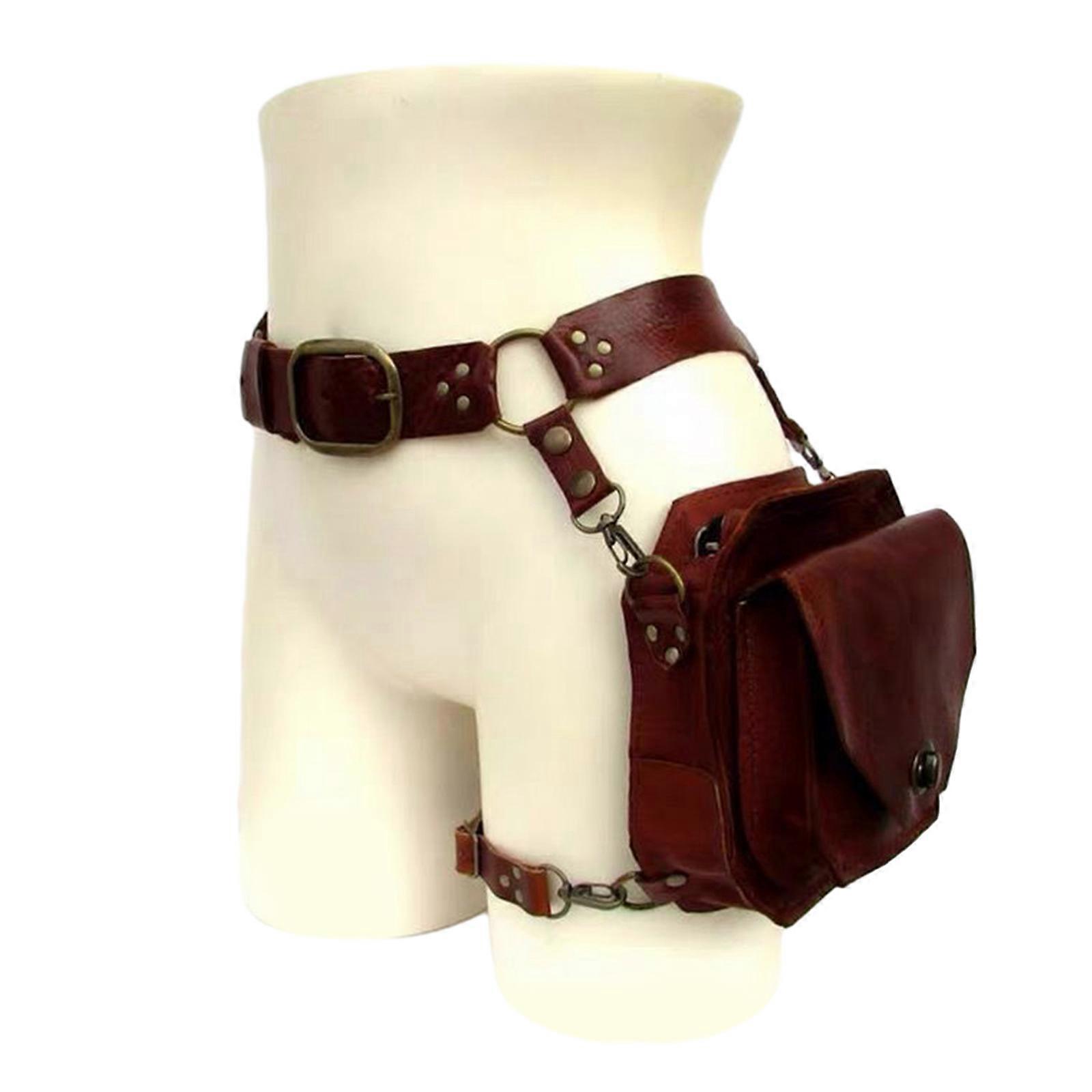 Steampunk Drop Leg Thigh Bag For Men Women, Medieval Waist Bag Leg Bag Climbing Cycling Thigh Bag Leather Fanny Bag brown