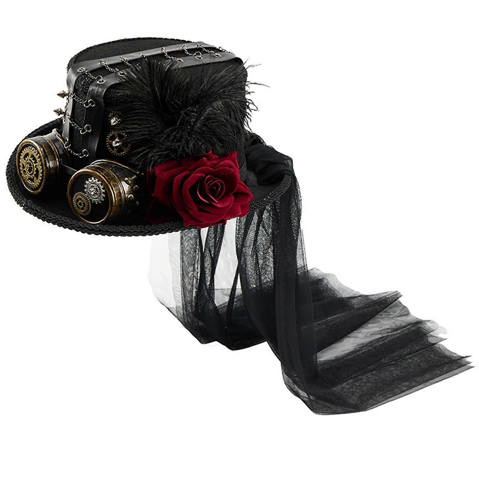 Steampunk Magicians Top Hat With Goggles Rose Flower Victorian Gothic Party Tall Hat Halloween Dressingup Accessories