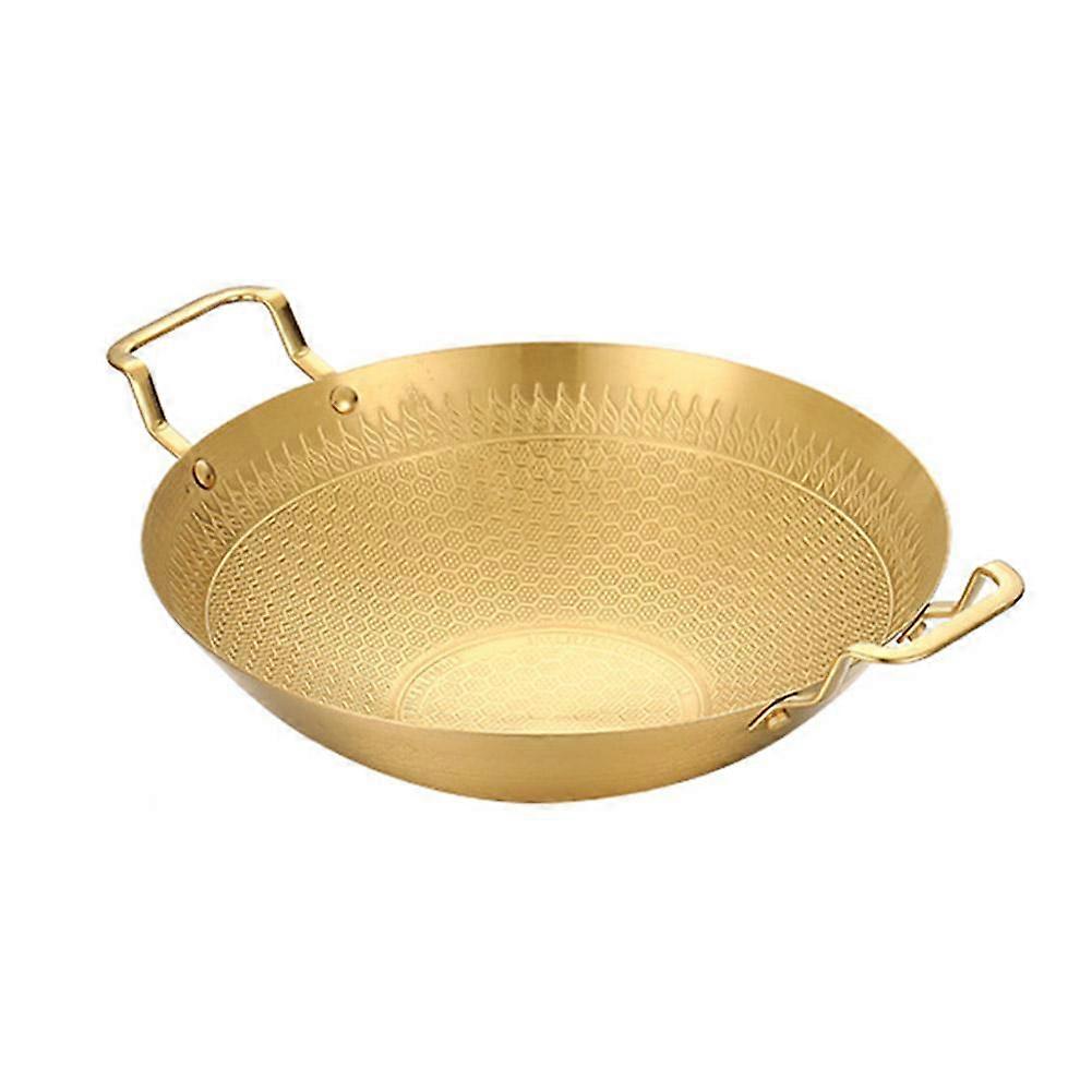 High-Quality Material: The steel griddle is made of durable steel, ensuring long-lasting performance and resistance to rust and corrosion. It is a reliable and safe choice for cooking. Even Heat Distribution: The steel material used in the griddle ensures efficient and even heat distribution, allowing for consistent cooking results. You can enjoy evenly cooked meals every time. Wide Range of Use: This griddle is suitable for use in hotels, hot pot restaurants, and various other food establishments. It is versatile and can be used for various cooking techniques such as frying, sautéing, and stir-frying. Enhanced Safety Features: The griddle is designed with widened and thickened double ears, providing a secure grip and preventing accidental burns or scalds. The anti-scald design ensures safe and comfortable handling. Honeycomb Texture Process: The pot body of the griddle features a honeycomb texture process, which helps to prevent food from sticking and promotes easy release. This makes cleaning up after cooking a breeze. Name: steel griddle Material: steel Color: golden Size: Diameter 22cm, total length (including ears) 29cm, height 5.5cm/ 8.66 * 11.42 * 2.17 inch Diameter 24cm, total length (including ears) 31.5cm, height 6.5cm/ 9.45 * 12.40 * 2.56 inch Diameter 26cm, total length (including ears) 33.5cm, height 7cm/ 10.24 * 13.19 * 2.76 inch Diameter 28cm, total length (including ears) 36.5cm, height 7cm/ 11.2 * 14.37 * 2.76 inch Diameter 30.3cm, total length (including ears) 39cm, height 8cm/ 11.93 * 15.35 * 3.15 inch Applicable: hotels, hot pot restaurants, etc. List: 1pcs* pot Notice: Please understand that color deviation may vary due to different monitor settings. Due to manual measurement, there will be some errors, which is a normal phenomenon. If you encounter problems, please let us know at the first time, we will provide you with the best service and solve the problem at the first time.