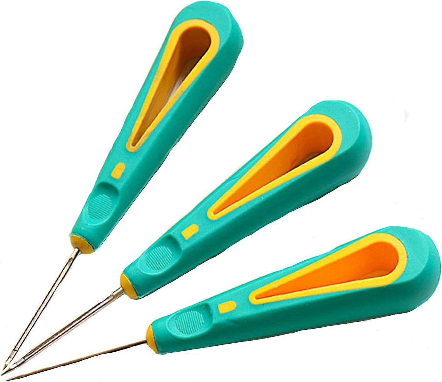 Steel Sewing Awl Creative Hole Cone Hook Needle with Rubber Grip Portable Hand Stitching Puncher Candle Wick Processing Needle for DIY Repair Leather