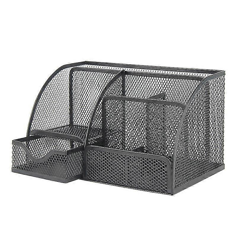 Steel mesh desk storage bag, 6 compartments, with 1 sliding drawer, black