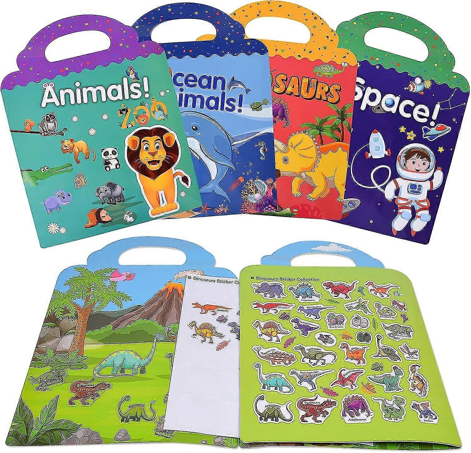 Sticker Notebook, 4 Pack Reusable Sticker Book For Kids, Ocean Animals And Dinosaurs Removable Sticker Books For Toddlers, For Ages 2-6