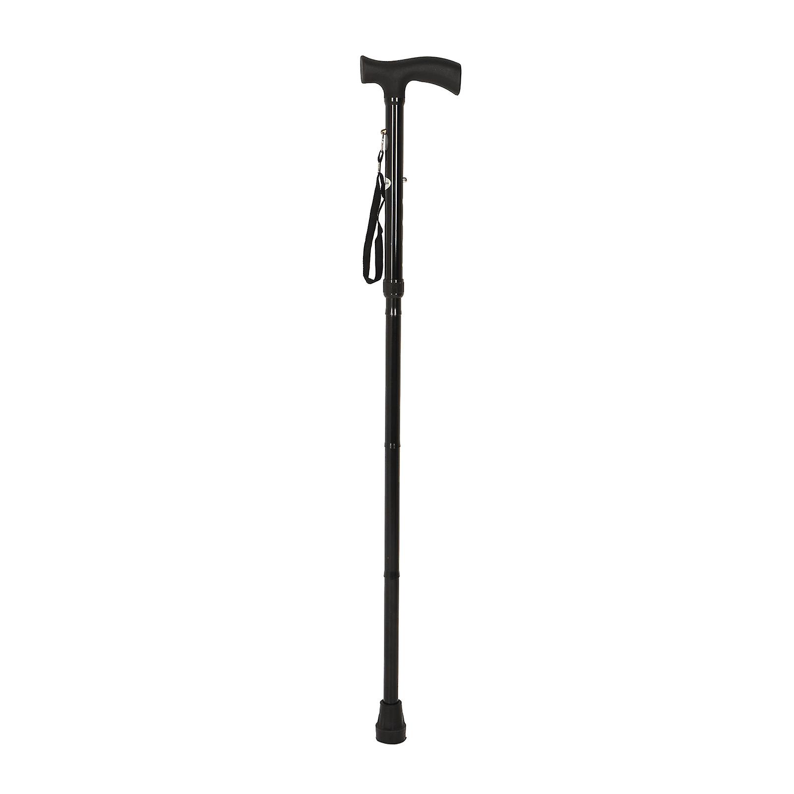 Walking Stick 5 Section Folding Aluminum Alloy Rod Anti Skid Rubber Pad Trekking Stick Black